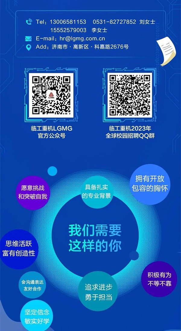 選擇臨工,意味著您的才華將得到最大程度的展現(xiàn)。臨工誠(chéng)邀全球最優(yōu)秀的工程機(jī)械人才加入我們,成功路上,我們結(jié)伴同行!