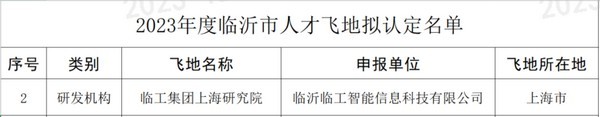近日,臨沂市科學(xué)技術(shù)局公布2023年度臨沂市人才飛地認(rèn)定名單,臨沂臨工智能信息科技有限公司成功入選。此次入選“人才飛地”是對(duì)公司在人才引進(jìn)、培養(yǎng)以及研發(fā)創(chuàng)新方面的充分肯定和高度認(rèn)可。